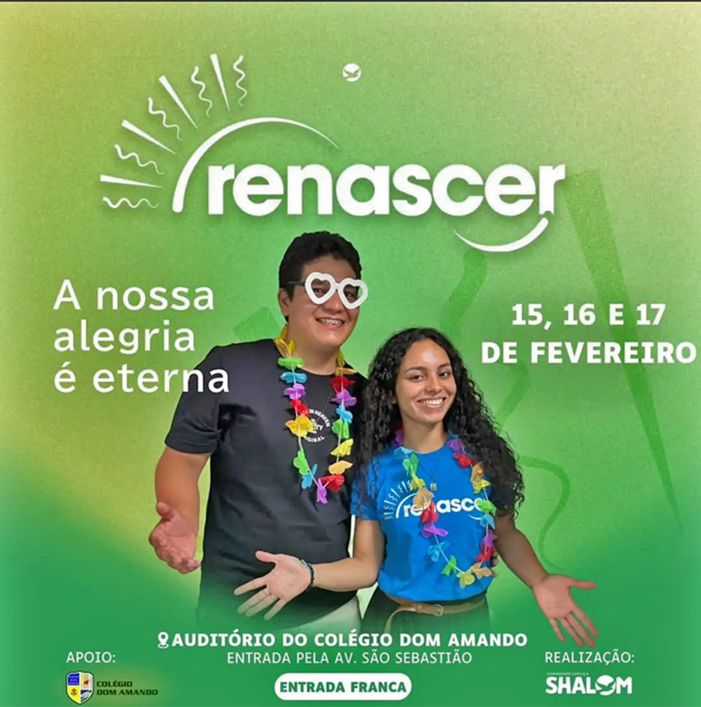 Na Arquidiocese de Santarém, a Comunidade Católica Shalom promove o Renascer, tradicional retiro de Carnaval aberto ao público. O evento acontece nos dias 15, 16 e 17 de fevereiro, no Colégio Dom Amando (entrada pela Av. São Sebastião). A programação inicia pela manhã, às 8h, e no período da tarde, às 14h. A entrada é gratuita.