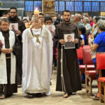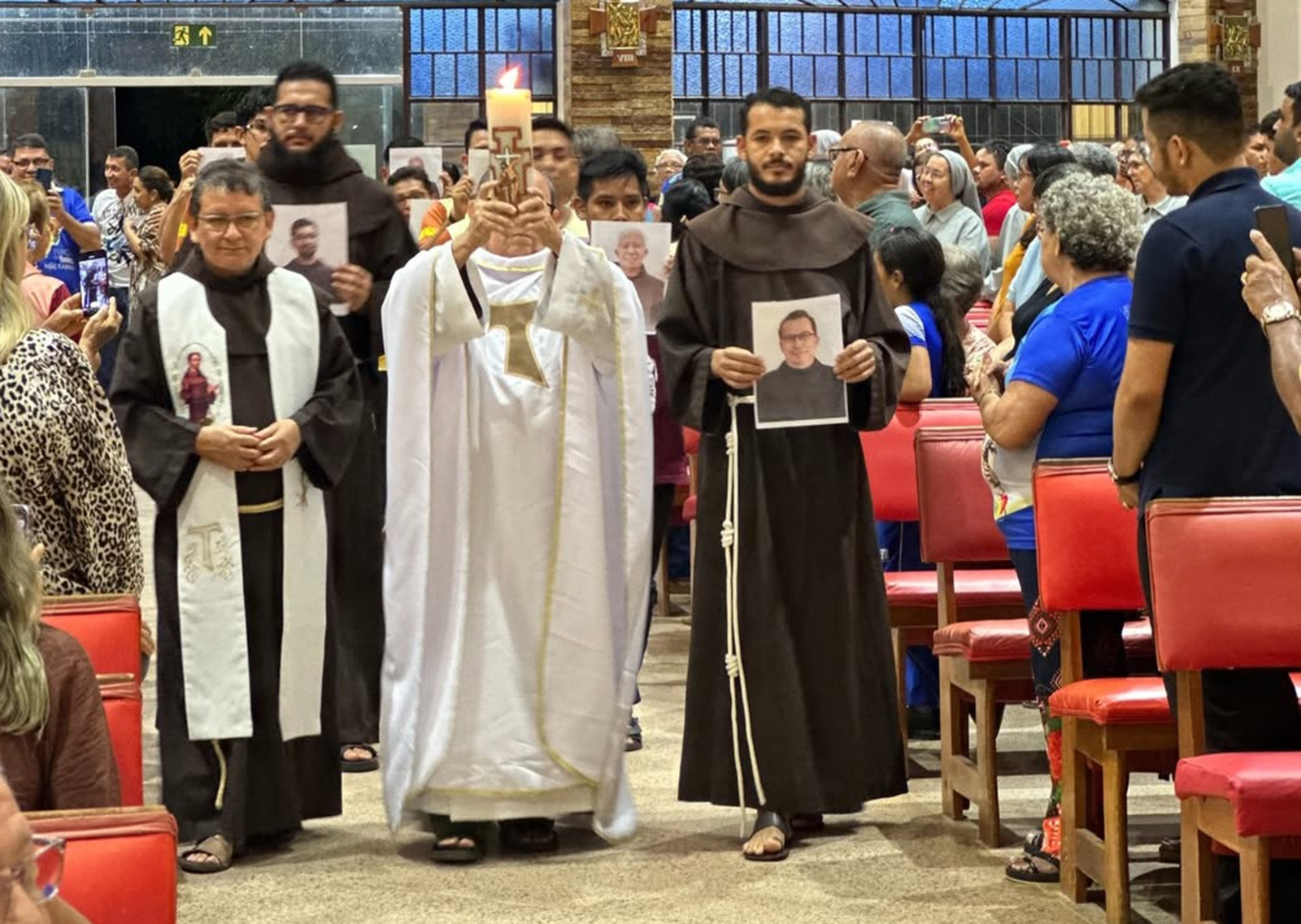 Durante os ritos iniciais, foi realizada a entrada da imagem de São Francisco de Assis, conduzida pelas irmãs franciscanas e colocada ao lado do altar, como sinal da presença e da espiritualidade franciscana que anima a caminhada da Igreja.