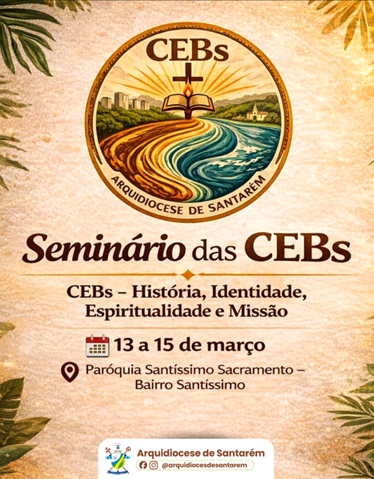 De 13 a 15 de março, a Arquidiocese de Santarém promove o Seminário das Comunidades Eclesiais de Base (CEBs), com o objetivo de fortalecer a caminhada pastoral das comunidades e aprofundar a identidade, a espiritualidade e a missão das CEBs na realidade amazônica. O encontro será realizado na Paróquia do Santíssimo Sacramento, em Santarém.