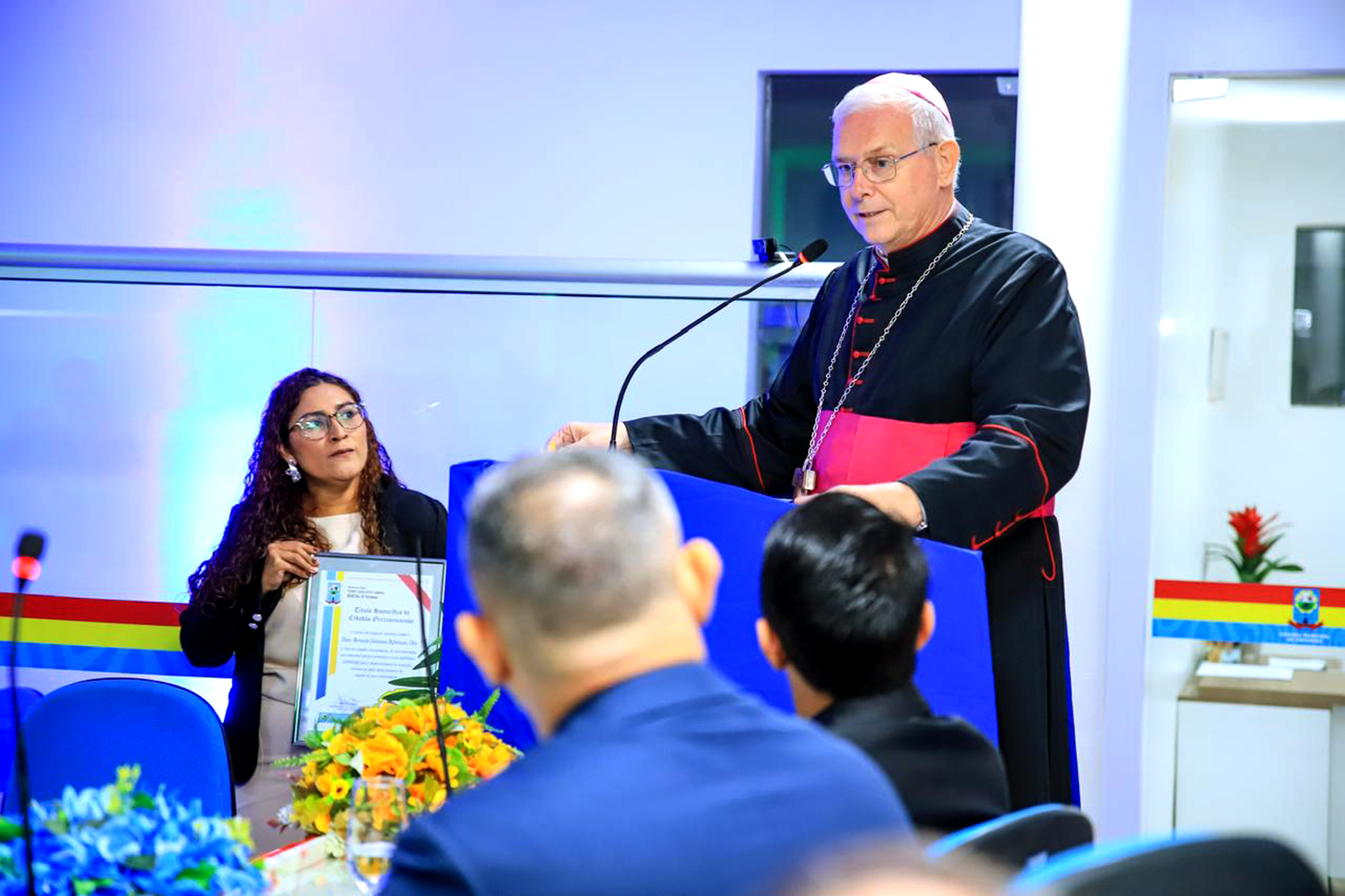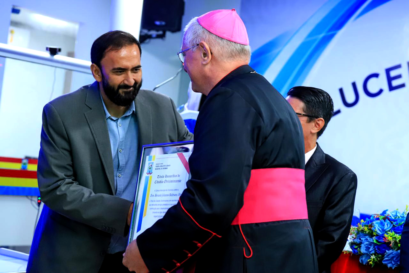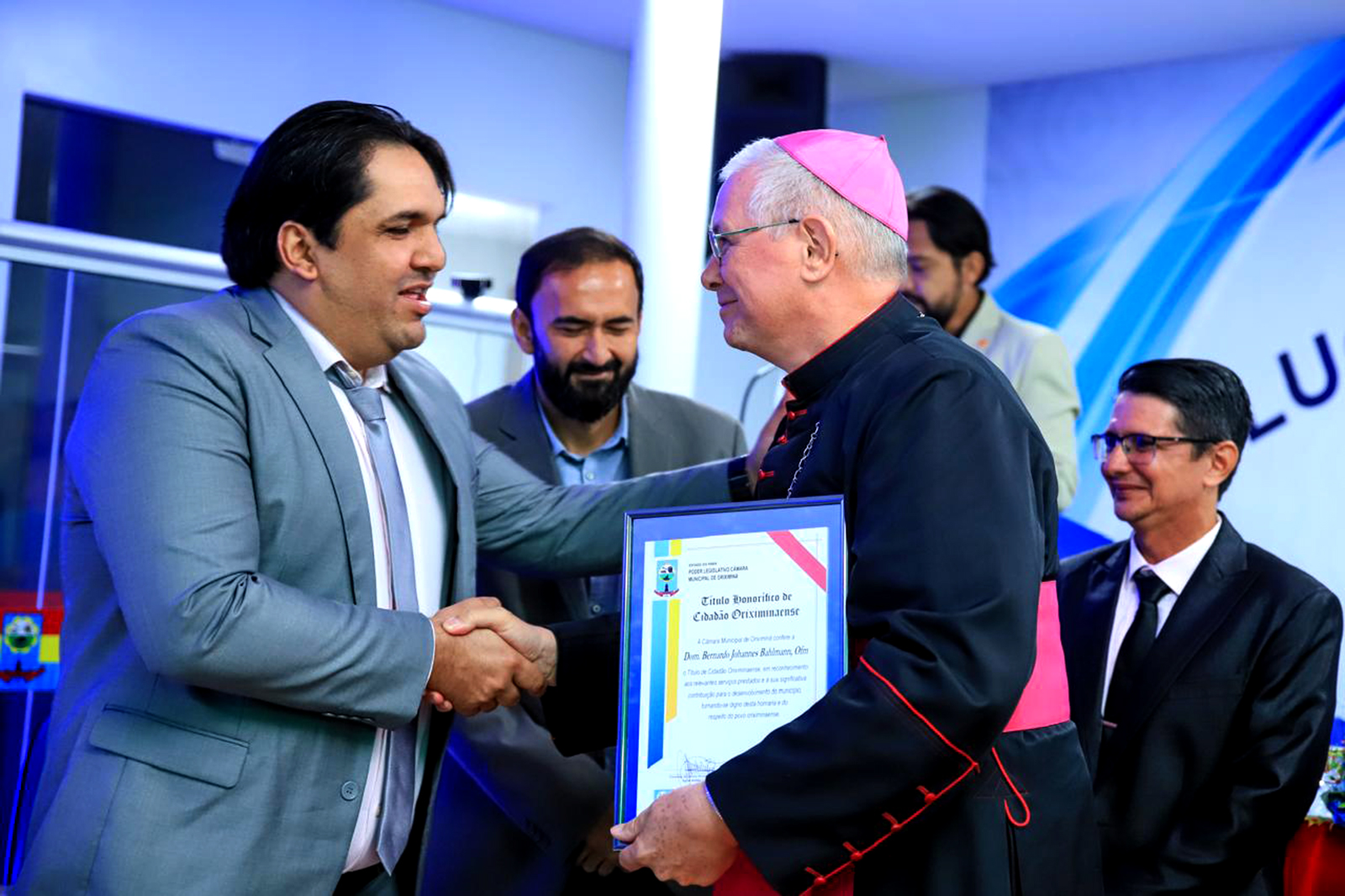 Em uma Sessão Solene realizada na noite de sexta-feira (20), a Câmara Municipal de Oriximiná outorgou o Título Honorífico de Cidadão Oriximinaense ao Bispo Diocesano, Dom Bernardo Johannes, OFM. A honraria é um reconhecimento oficial aos relevantes serviços prestados pelo Bispo à população local, com especial destaque para suas atuações nas áreas pastoral e social.