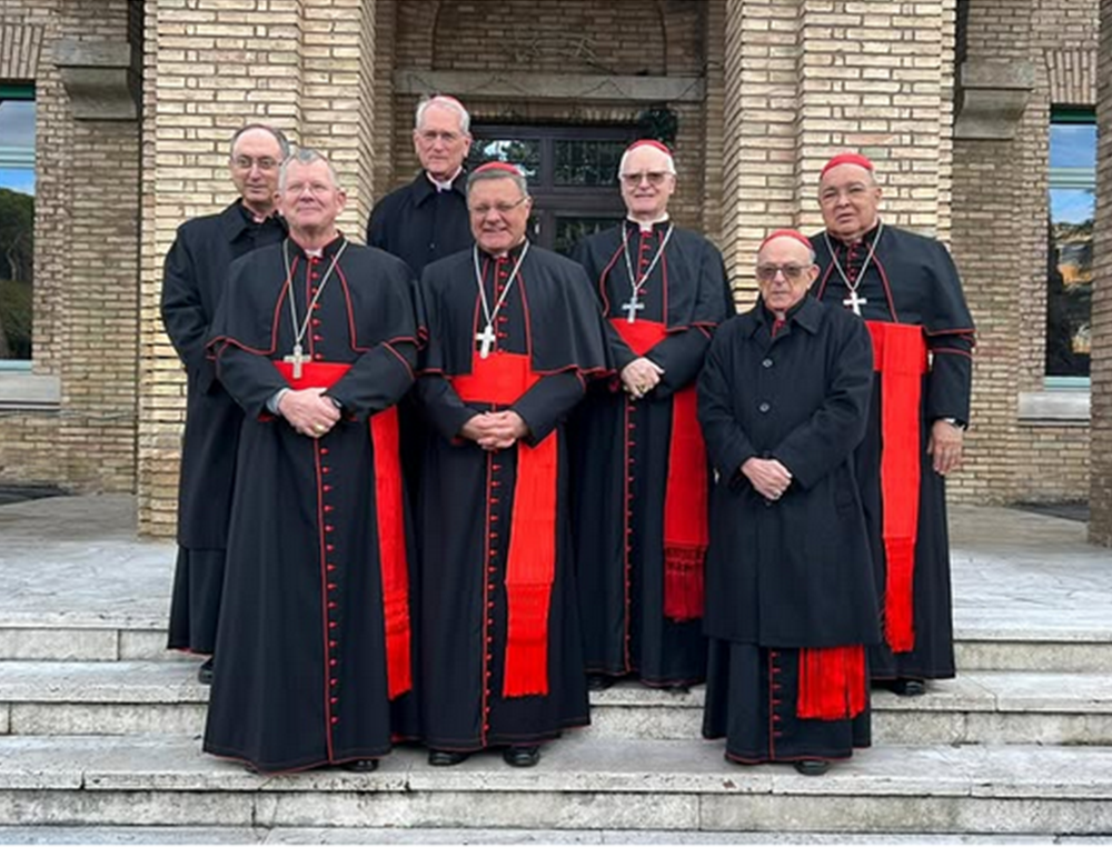 Na foto divulgada peloInstagram da CNBB no primeiro dia de Consistório, vimos da esquerda para a direita os seguintes cardeais: